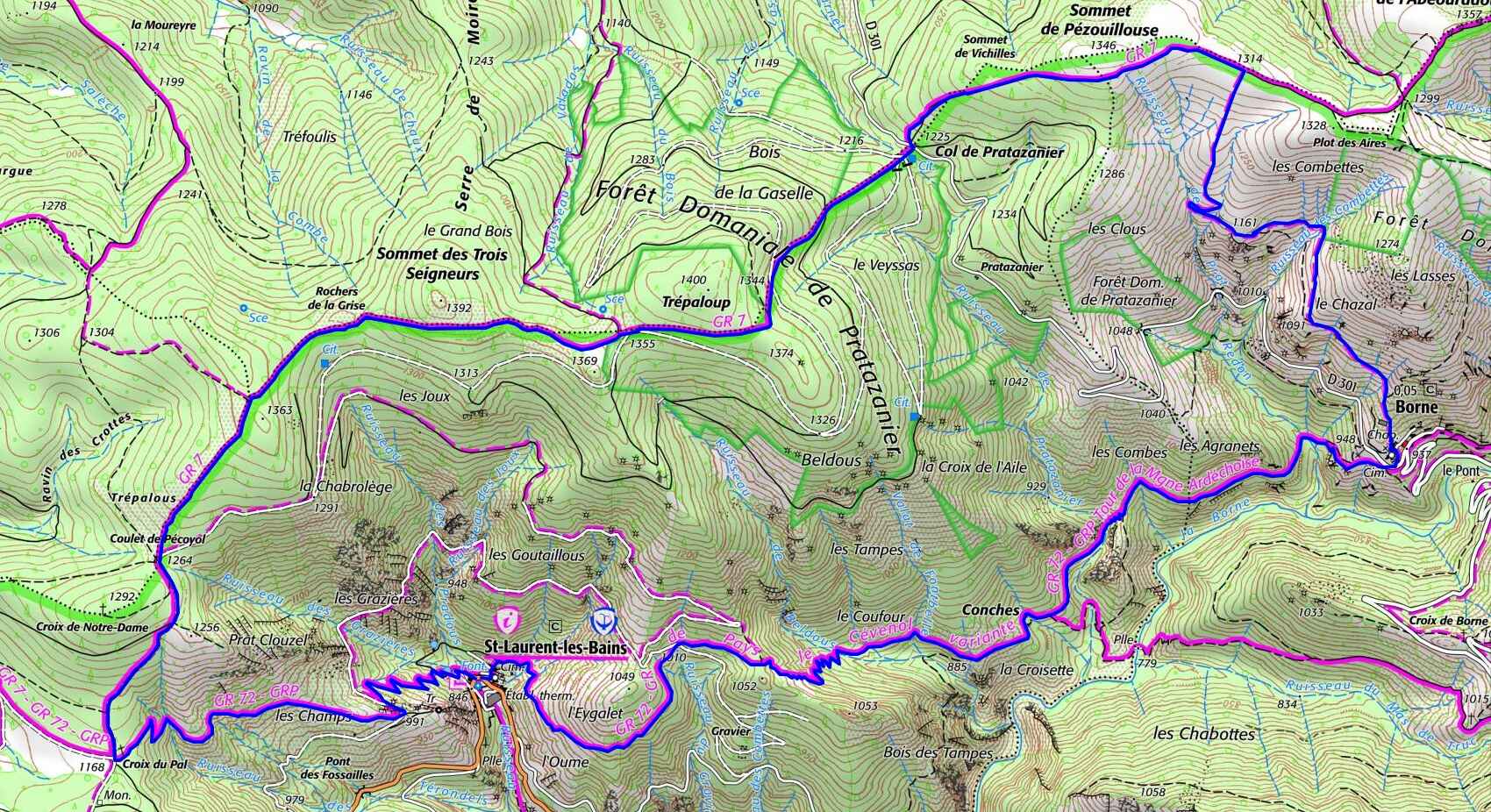 IGN地图: 拉尔让蒂耶尔和巴斯蒂德-普尤劳兰特维瓦尔塞塞万(2838OT)
