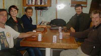 James, the mechanic from the Northern Territories, Dwain, the professional fisherman, Dave, the chief engineer, and Darren, nicknamed Whity, the occasional cook, a lawyer by profession and son of the owner of the Zeal.
