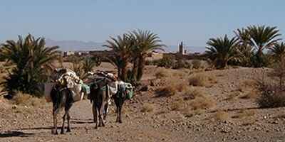 We left a little late in the morning with Lhoucine, Mohammed the camel driver, and two camels, leaving the small town of Zagora for the desert and the last rocky barriers before reaching M'hamid and the Sahara for a 4-day walk, covering about 20 km per day under a strong sun and an ever-blue sky.