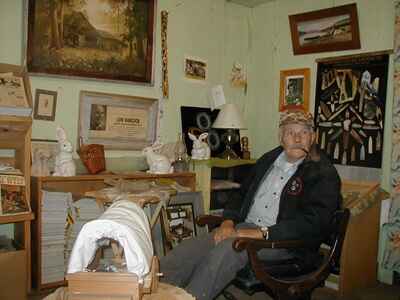 Es un personaje con quien me daría mucho gusto pasar una semana, escuchándolo y compartiendo su ritmo. Tiene detrás de su casa una vieja cabaña donde todo ha quedado como antes, hace mucho. El piso cruje, el viejo papel tapiz da una idea de la atmósfera de la habitación.