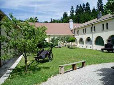 Pero hubo otro aspecto de mi estancia en Notre Dame des Neiges. En esta temporada tardía, los pensionistas eran pocos. Sin embargo, no estaba solo en la parte pública del monasterio. Está situada cerca de la puerta de entrada e incluye un pequeño comedor en la planta baja y, en el piso, un pasillo entero de celdas como la mía. He olvidado tontamente el precio de pensión para un retirante regular; era entre tres y cinco francos por día aproximadamente y, me parece, más cerca del primer precio. Los visitantes ocasionales como yo podían dar lo que quisieran en ofrenda espontánea; sin embargo, no se les reclamaba nada.