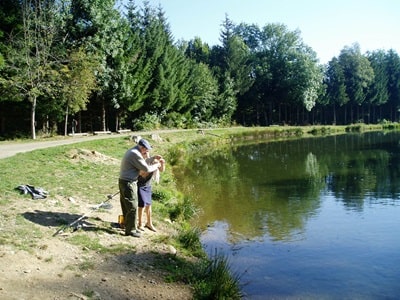 Nuestros organizadores nos llevan a pasear por el pueblo de La Bastide-Puylaurent y al estanque del Béal, que está acondicionado para la pesca de truchas de crianza. Su producción también se vende pescada con red. Nuestro cazador-pescador Popeil nos hace una demostración sobre el cebo de las truchas lanzándoles frutas rojas encontradas en el lugar y funciona...